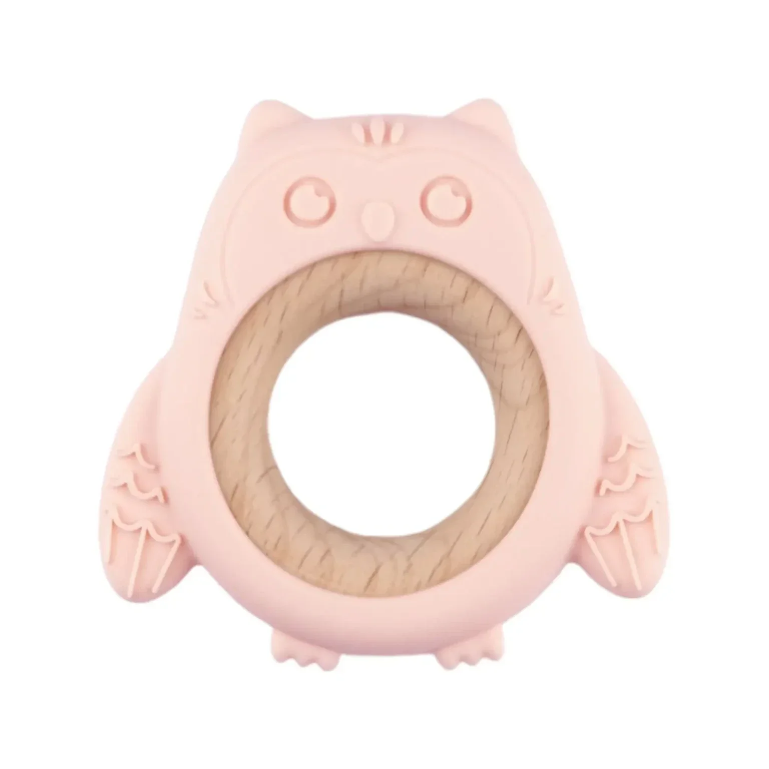 π Deze vrolijke licht roze uil past perfect bij onze collectie beukenhouten kralen, ringen en siliconen kralen – een mooie, harmonieuze combinatie voor jouw kleintje.