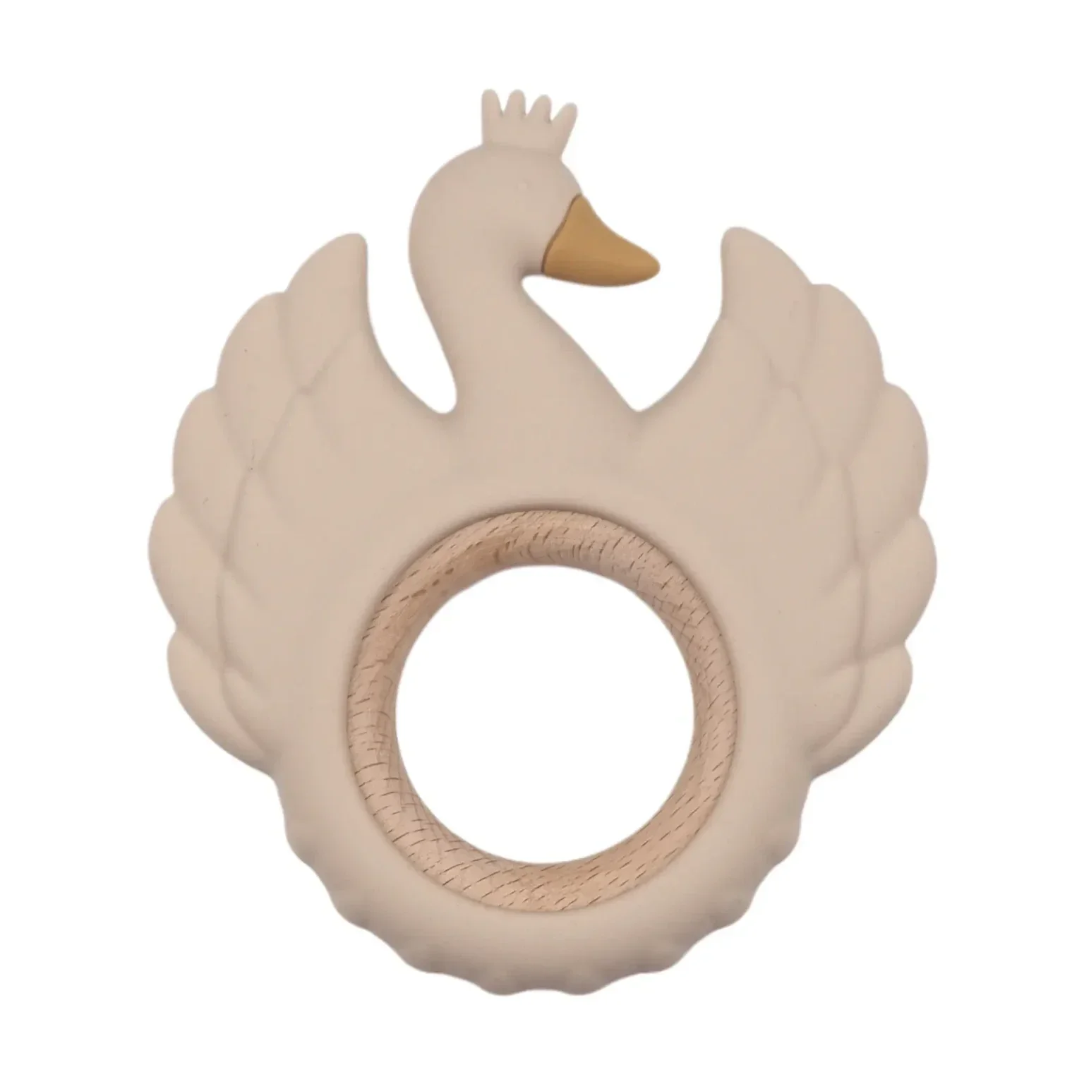 π Deze elegante zwaan past perfect bij onze collectie beukenhouten kralen, ringen en siliconen kralen – een rustige en harmonieuze combinatie voor jouw kleintje.