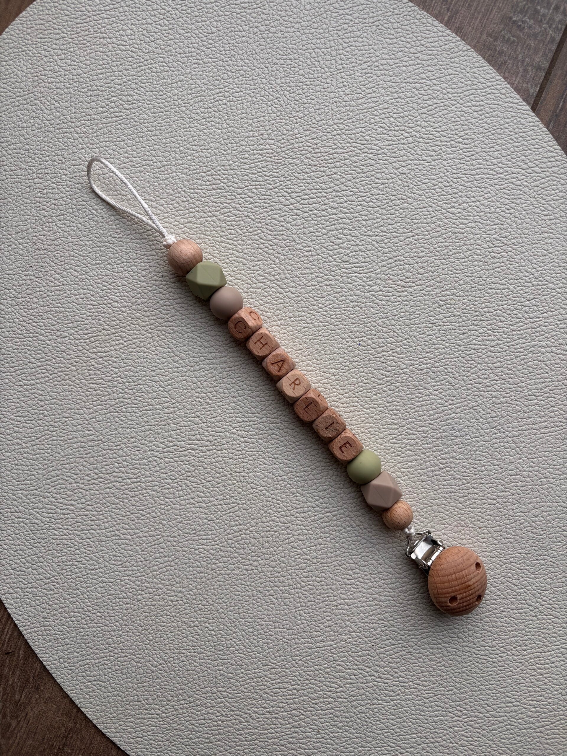 🌿 Ontdek dit schattige speenkoordje in zacht groen- en beige – fris, speels en helemaal on trend!